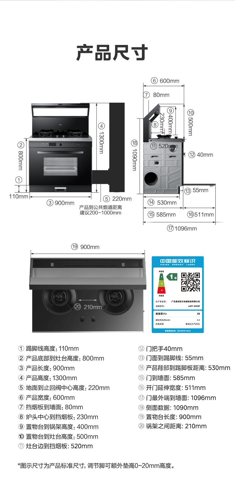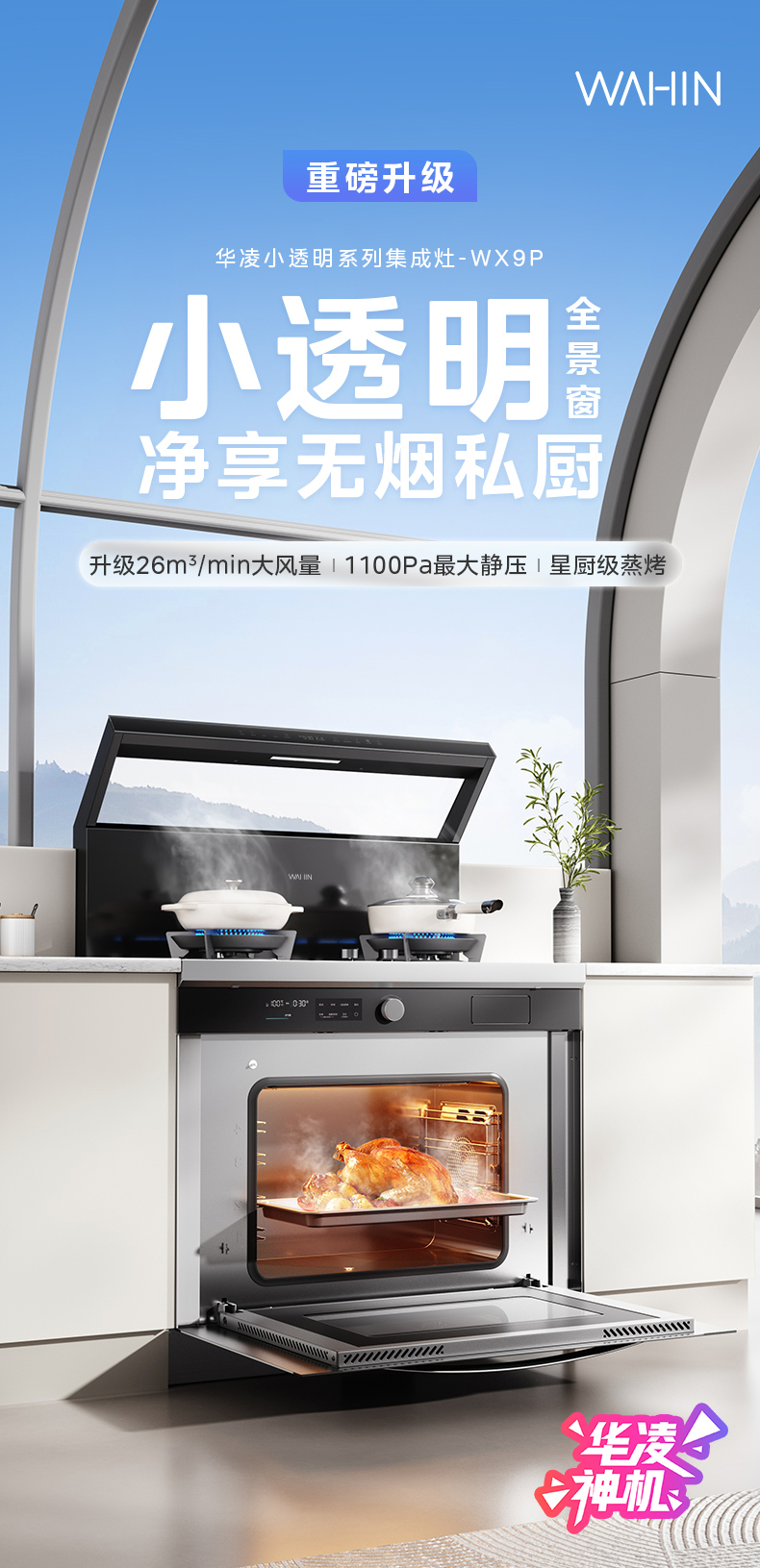 Midea(美的) 烟灶蒸烤一体 JJZT-WX9P 玻璃面板 天然气 华凌