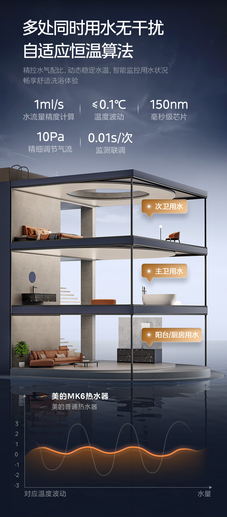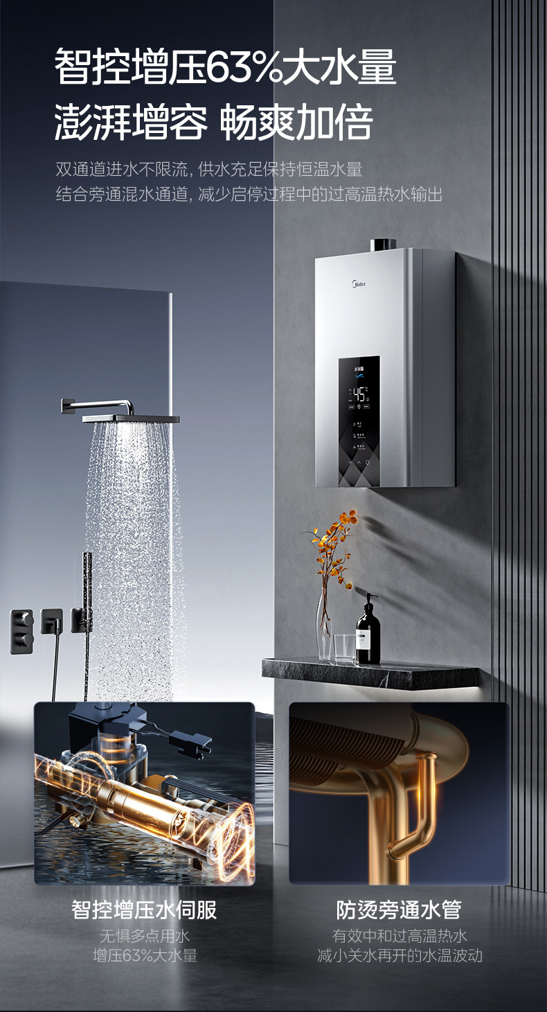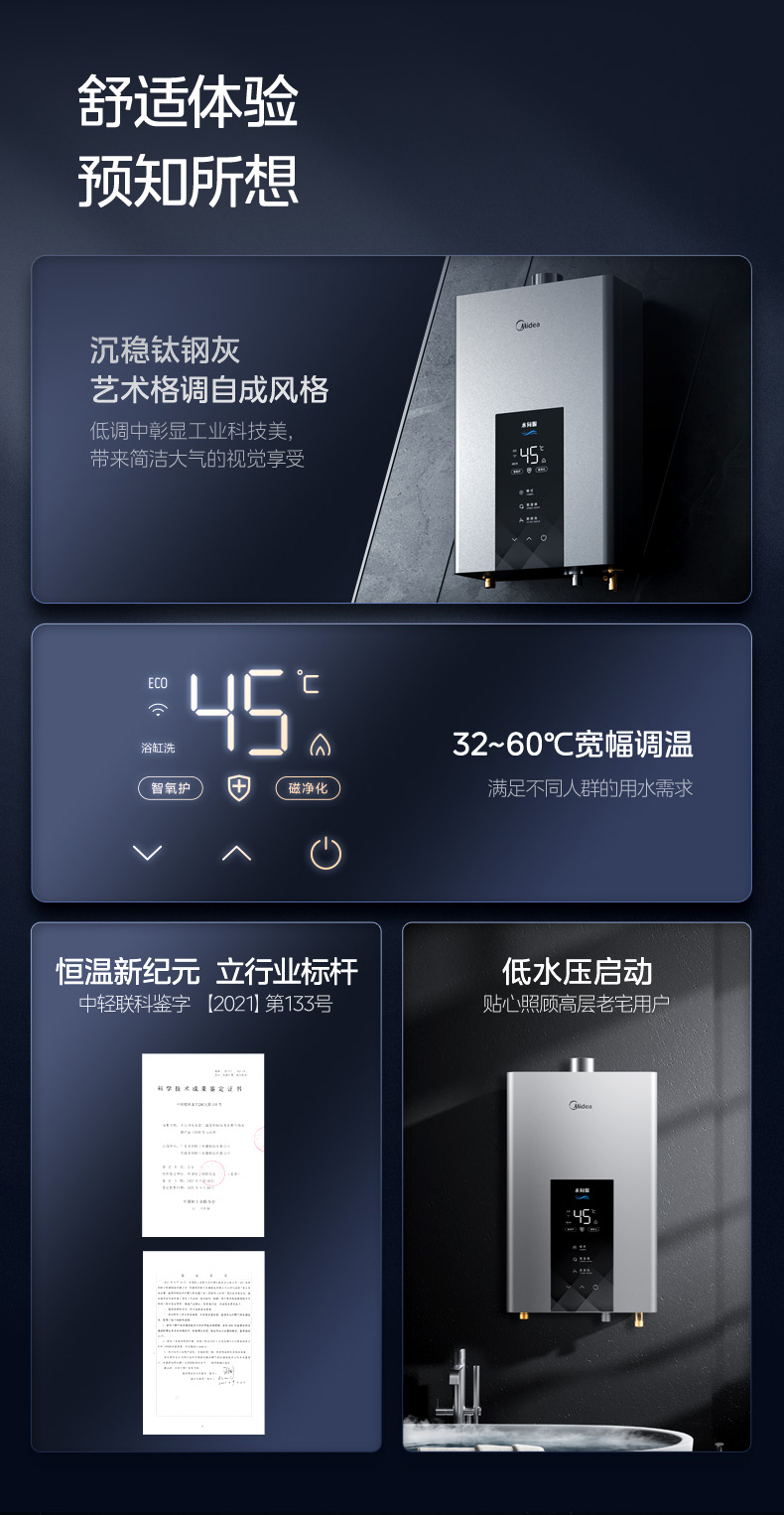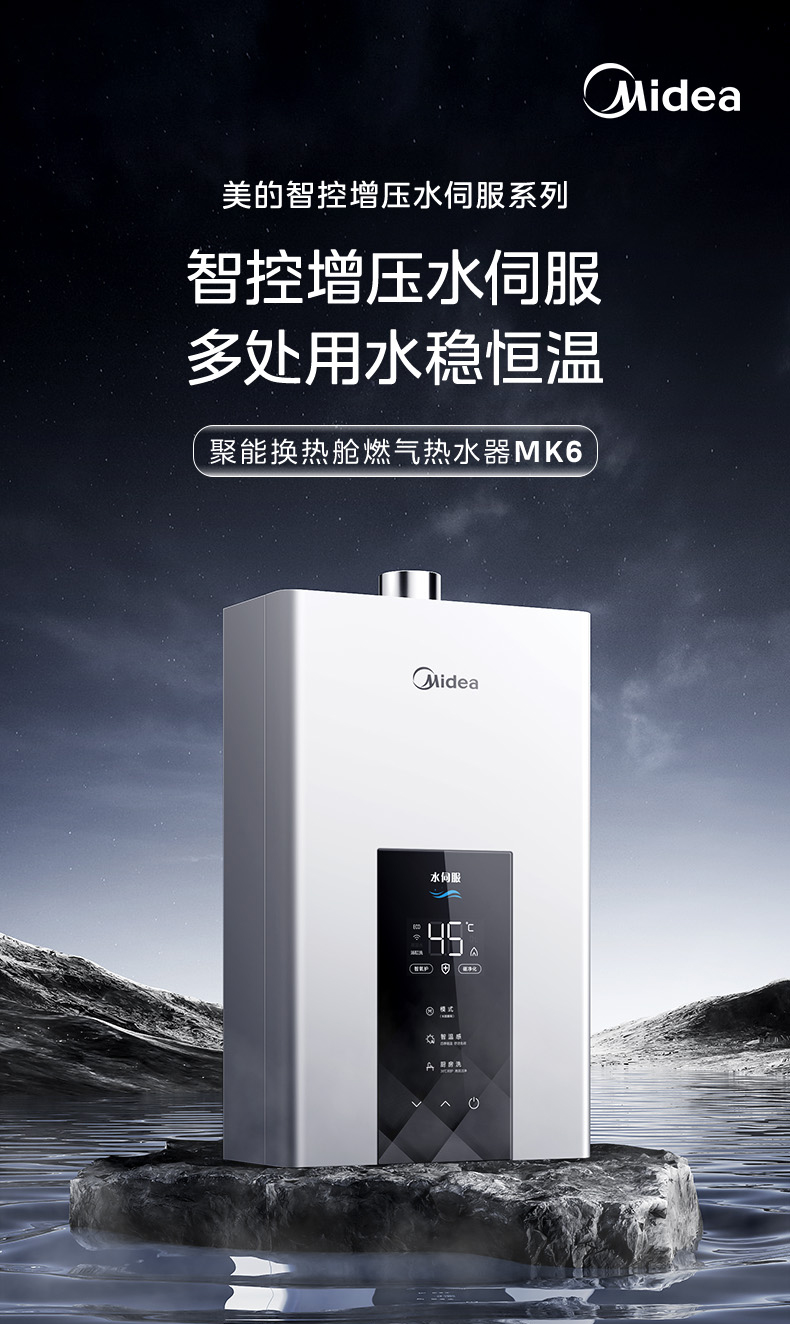Midea(美的) JSQ30-MK6 恒温式燃气热水器 钛钢灰 12T 电辅加机械防冻 耀夜