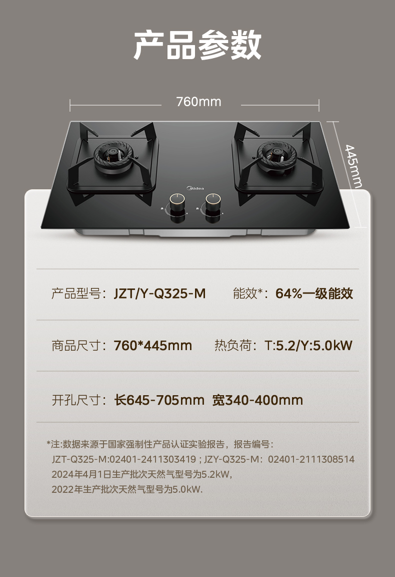 Midea(美的) JZY-Q325-M 嵌入式燃气灶 钢化玻璃 双炉 液化气 一级能效