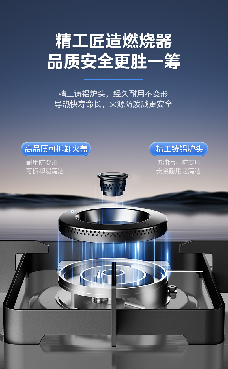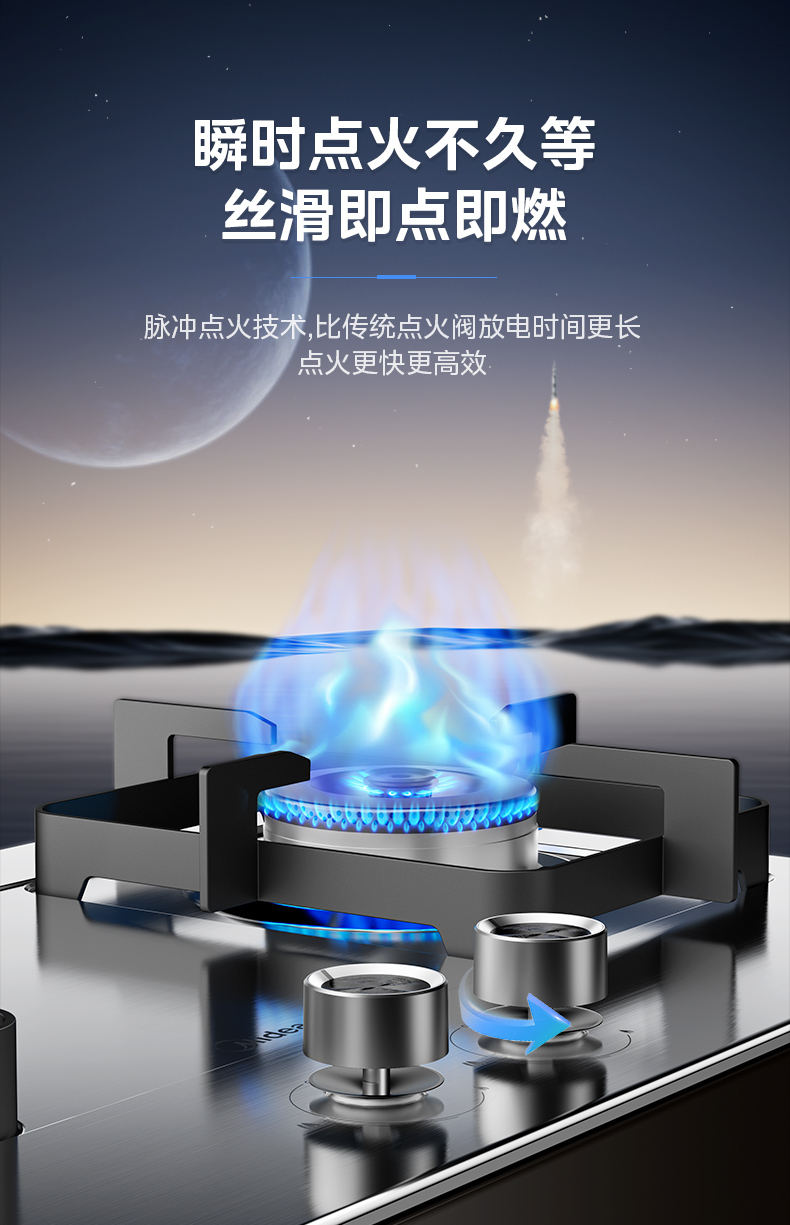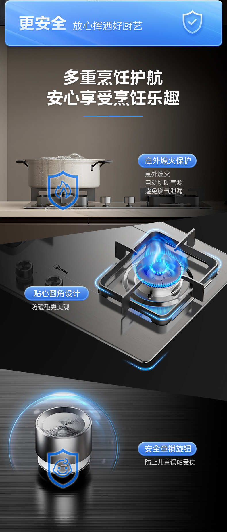 Midea(美的) JZY-Q315-M 嵌入式燃气灶 不锈钢 双头 液化气 一级能效