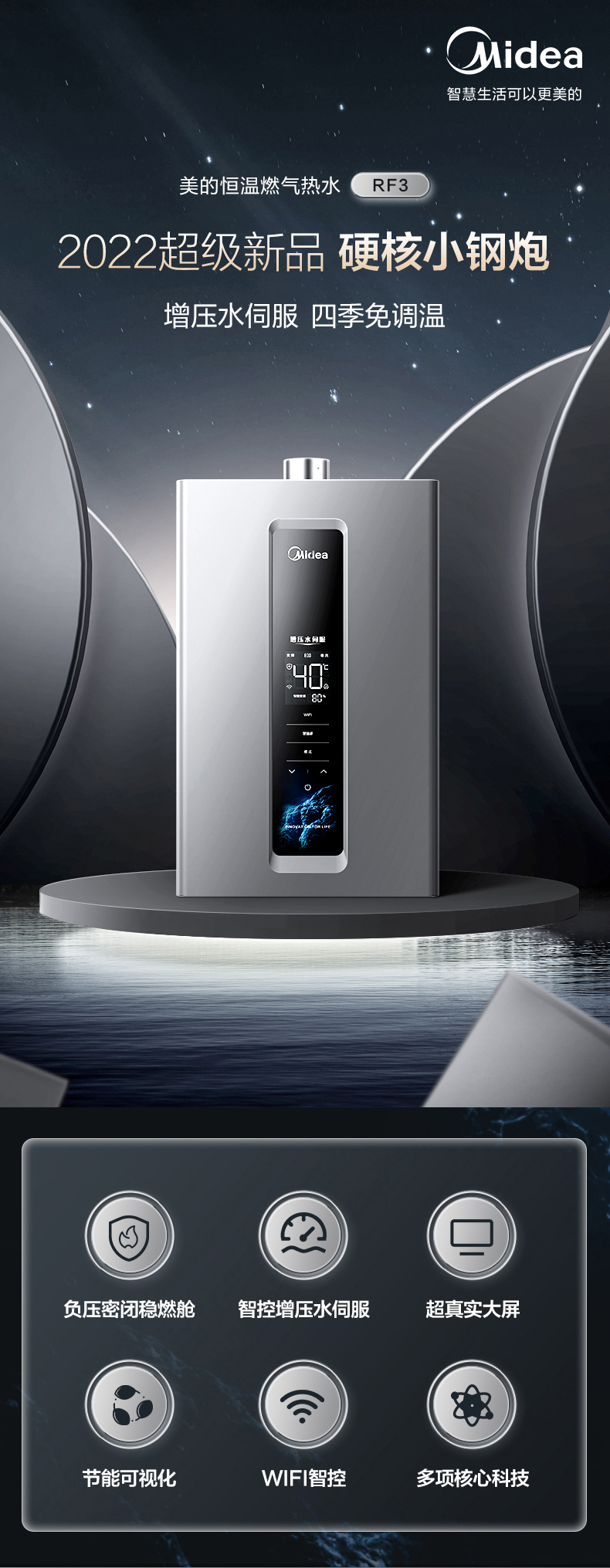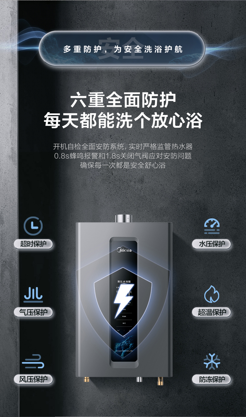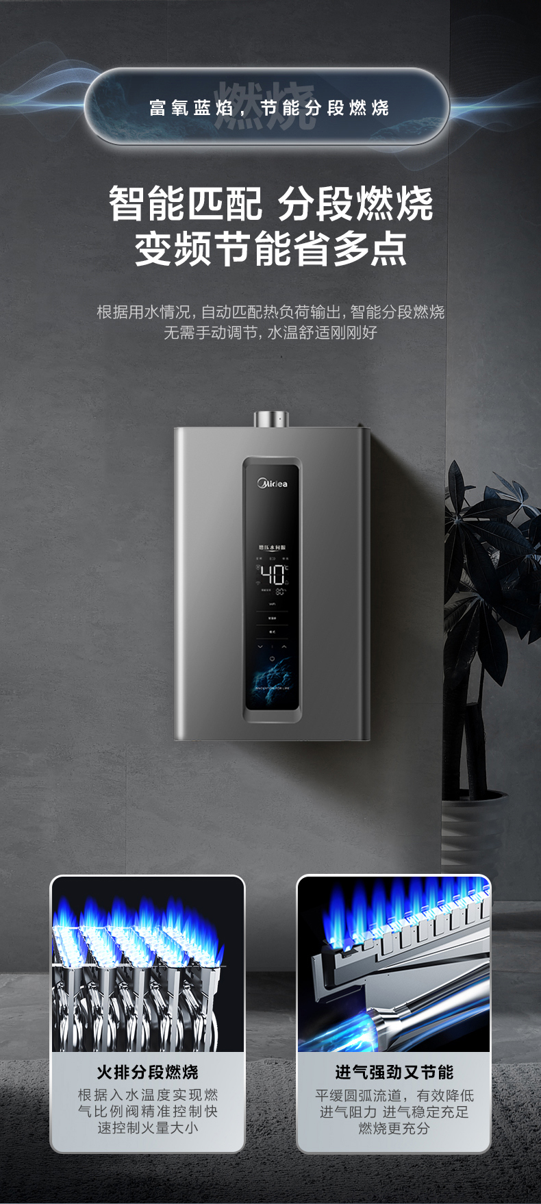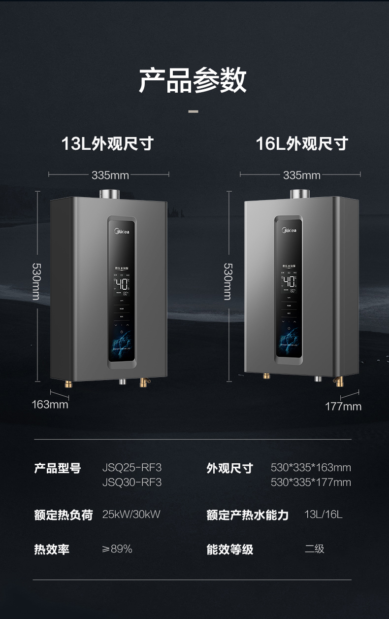 Midea(美的) JSQ30-RF3恒温式燃气热水器玄武灰12T电辅加机械防冻