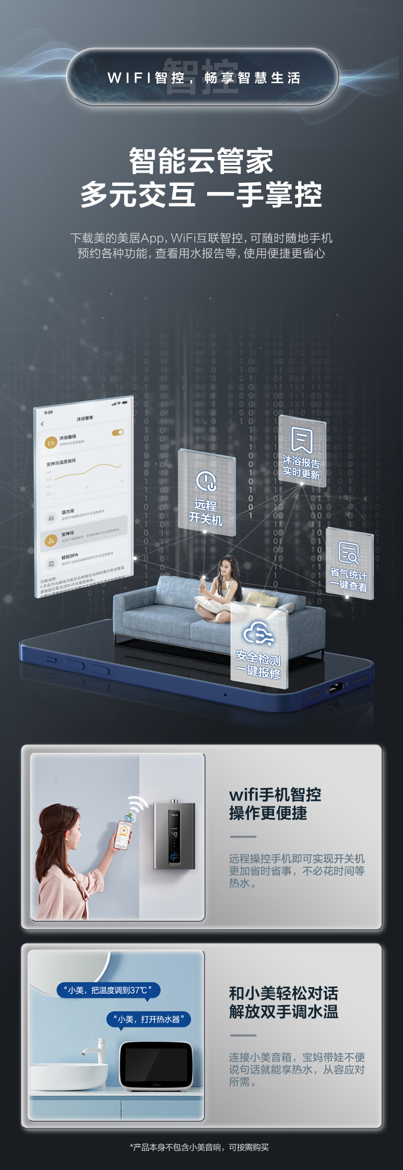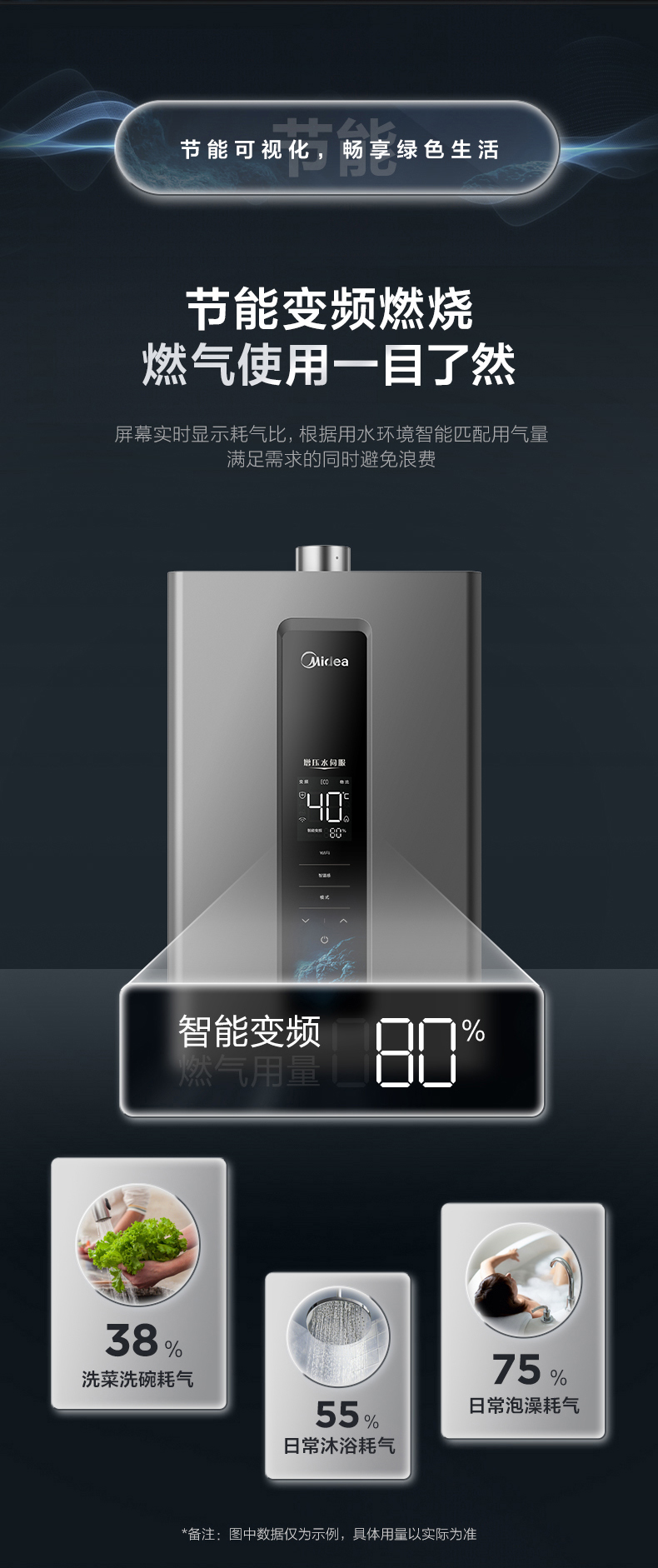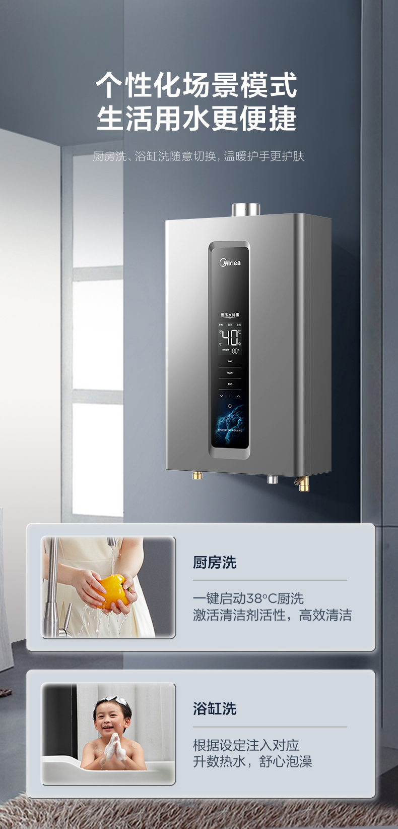Midea(美的) JSQ30-RF3恒温式燃气热水器玄武灰12T电辅加机械防冻