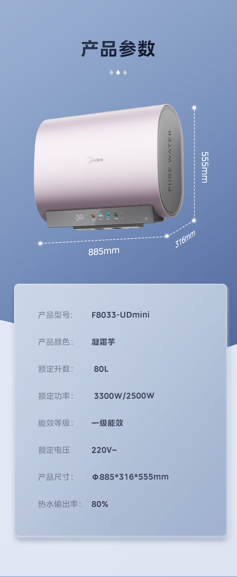 Midea(美的) F8033-UDmini(HE) 电热水器 凝霜芋-PCM
