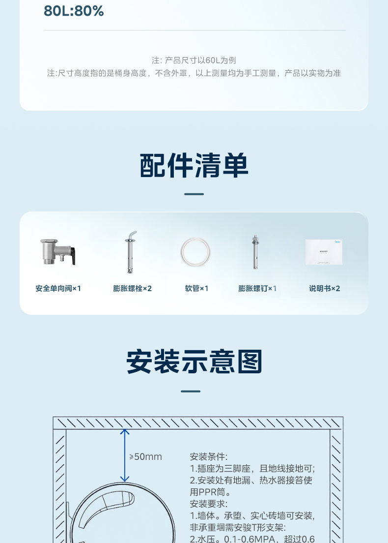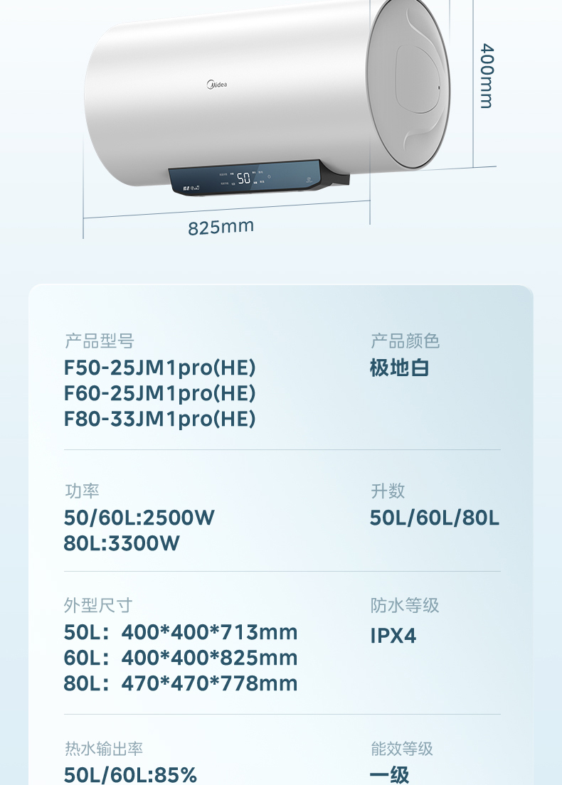 Midea(美的) F50-25JM1Pro(HE) 电热水器 极地白 非智能