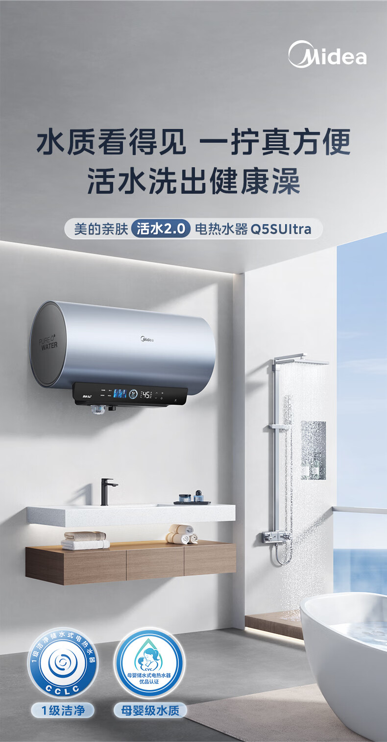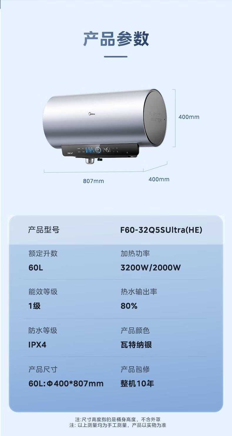 Midea(美的) F60-32Q5SUltra(HE) 电热水器 瓦特纳银