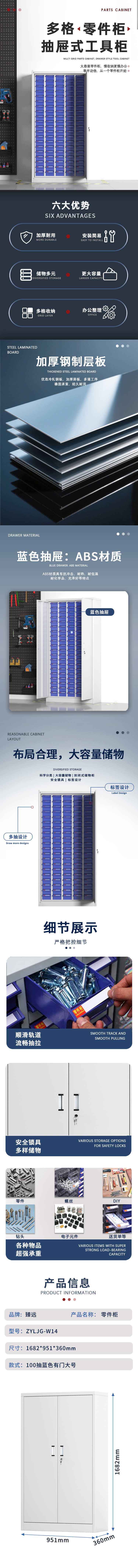 臻远 ZYLJG-W14 零件柜抽屉式工具柜电子元件柜螺丝柜样品柜物料柜 100抽蓝色有门大号