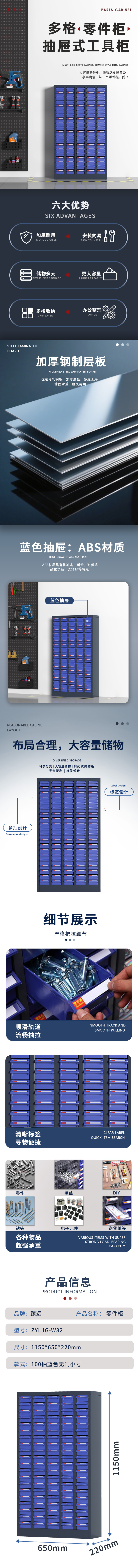 臻远 ZYLJG-W32 零件柜抽屉式工具柜电子元件柜螺丝柜样品柜物料柜 100抽蓝色无门小号