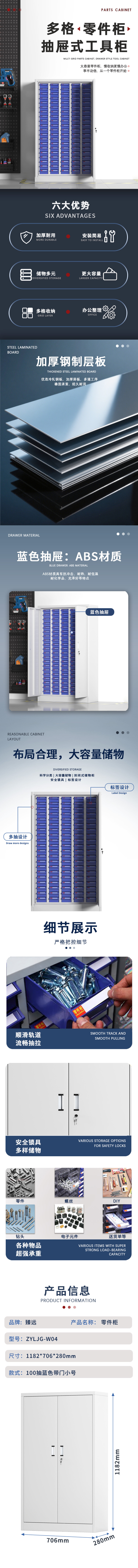 臻远 ZYLJG-W04 零件柜抽屉式工具柜电子元件柜螺丝柜样品柜物料柜 100抽蓝色带门小号