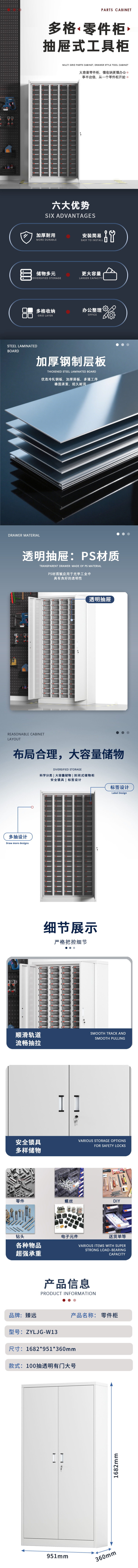 臻远 ZYLJG-W13 零件柜抽屉式工具柜电子元件柜螺丝柜样品柜物料柜 100抽透明有门大号