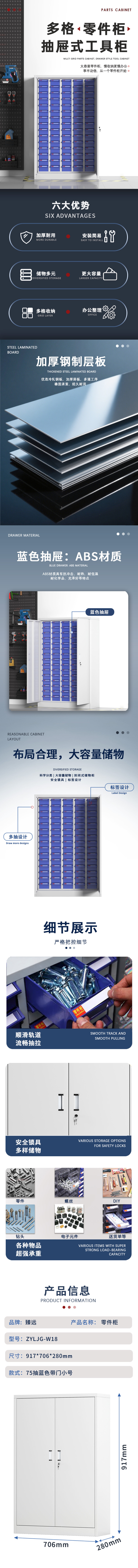 臻远 ZYLJG-W18 零件柜抽屉式工具柜电子元件柜螺丝柜样品柜物料柜 75抽蓝色带门小号