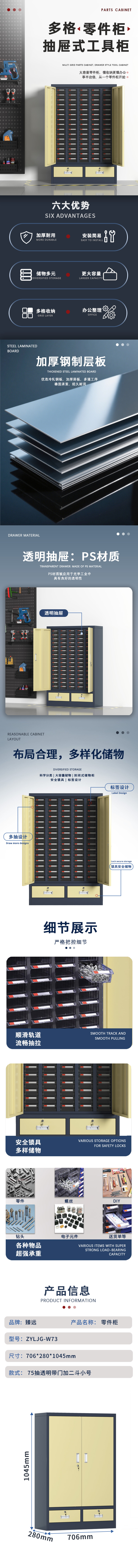 臻远 ZYLJG-W73 零件柜抽屉式工具柜电子元件柜螺丝柜物料柜 75抽透明带门加二斗小号