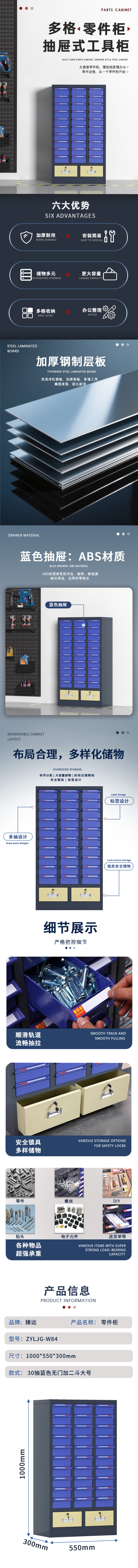 臻远 ZYLJG-W84 零件柜抽屉式工具柜电子元件柜螺丝柜物料柜 30抽蓝色无门加二斗大号