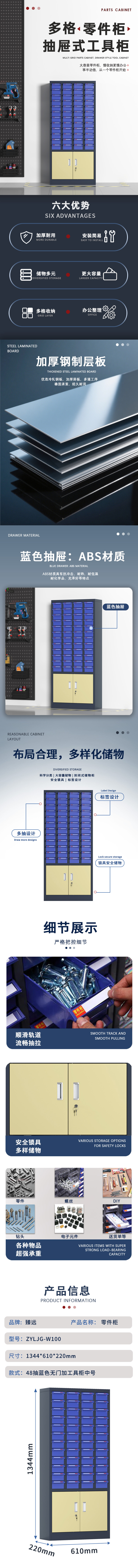 臻远 ZYLJG-W100 零件柜抽屉式工具柜电子元件柜螺丝柜物料柜 48抽蓝色无门加工具柜中号