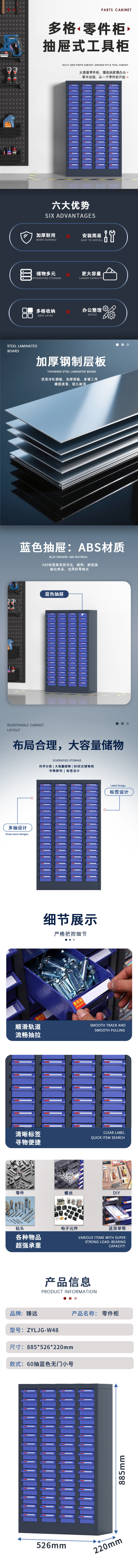 臻远 ZYLJG-W48 零件柜抽屉式工具柜电子元件柜螺丝柜样品柜物料柜 60抽蓝色无门小号