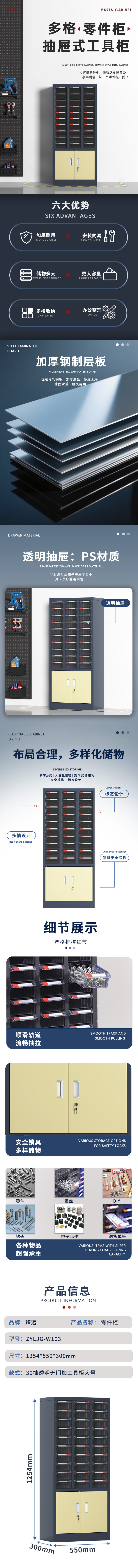 臻远 ZYLJG-W103 零件柜抽屉式工具柜电子元件柜螺丝柜物料柜 30抽透明无门加工具柜大号