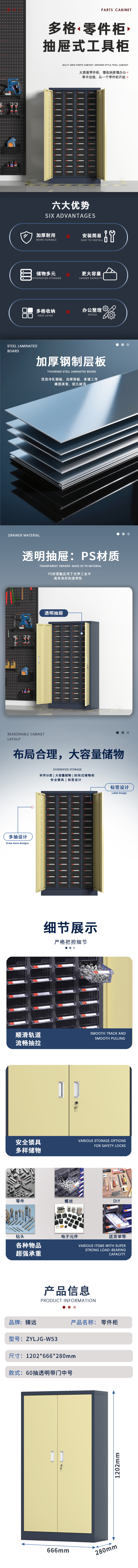 臻远 ZYLJG-W53 零件柜抽屉式工具柜电子元件柜螺丝柜样品柜物料柜 60抽透明带门中号