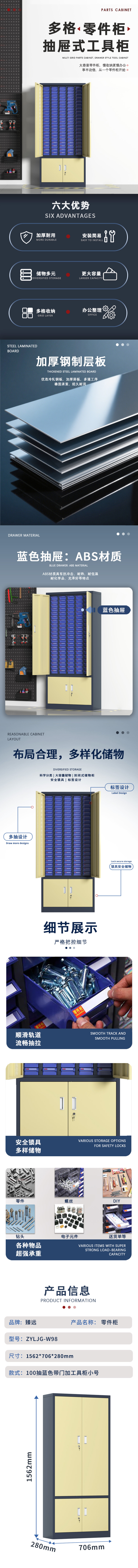 臻远 ZYLJG-W98 零件柜抽屉式工具柜电子元件柜螺丝柜物料柜100抽蓝色带门加工具柜小号