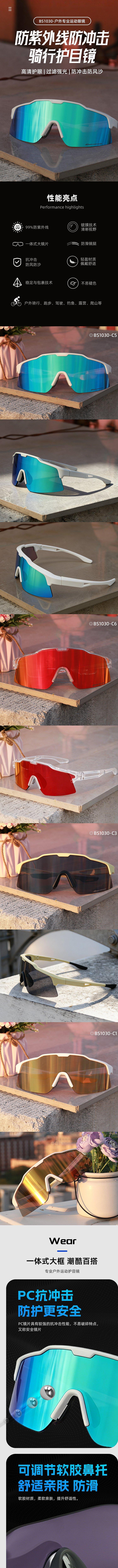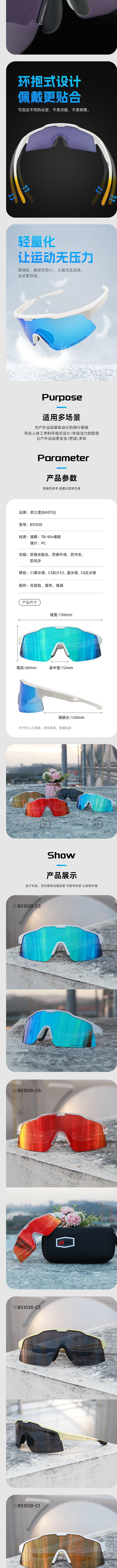 BASTO(邦士度) BS1030 骑行眼镜专业户外运动墨镜防风沙登山跑徒步男女护目镜