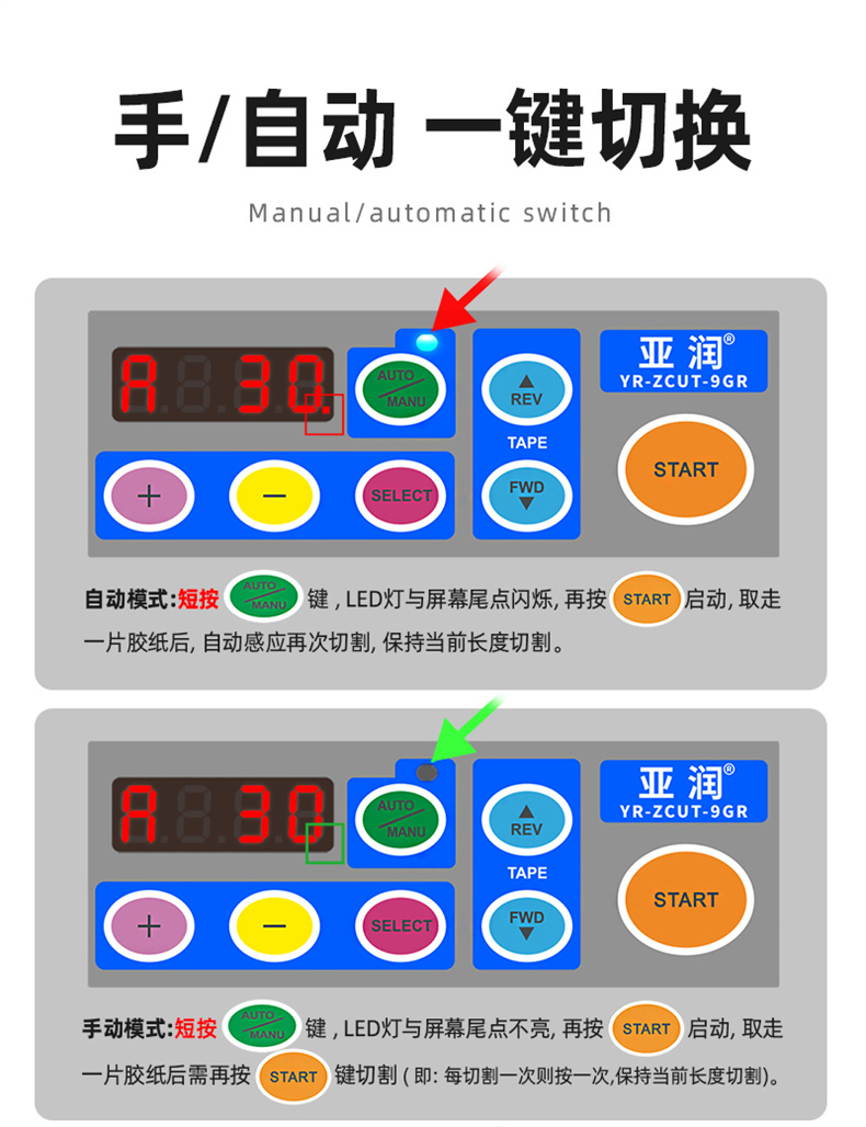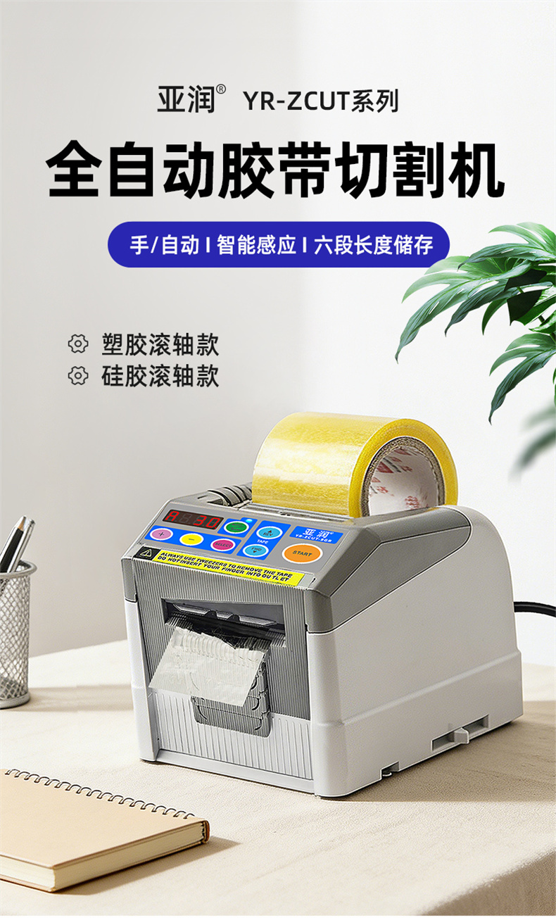 YARUN(亚润)胶带切割机YR-ZCUT-9GR-H塑料滚轴款全灰色