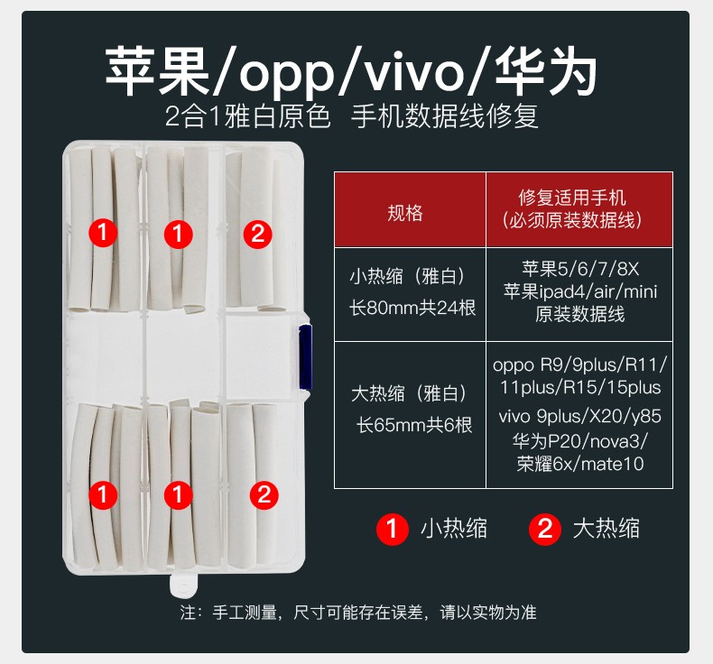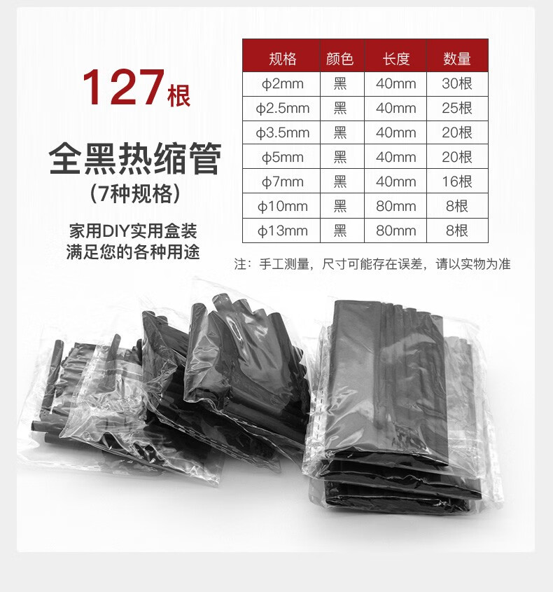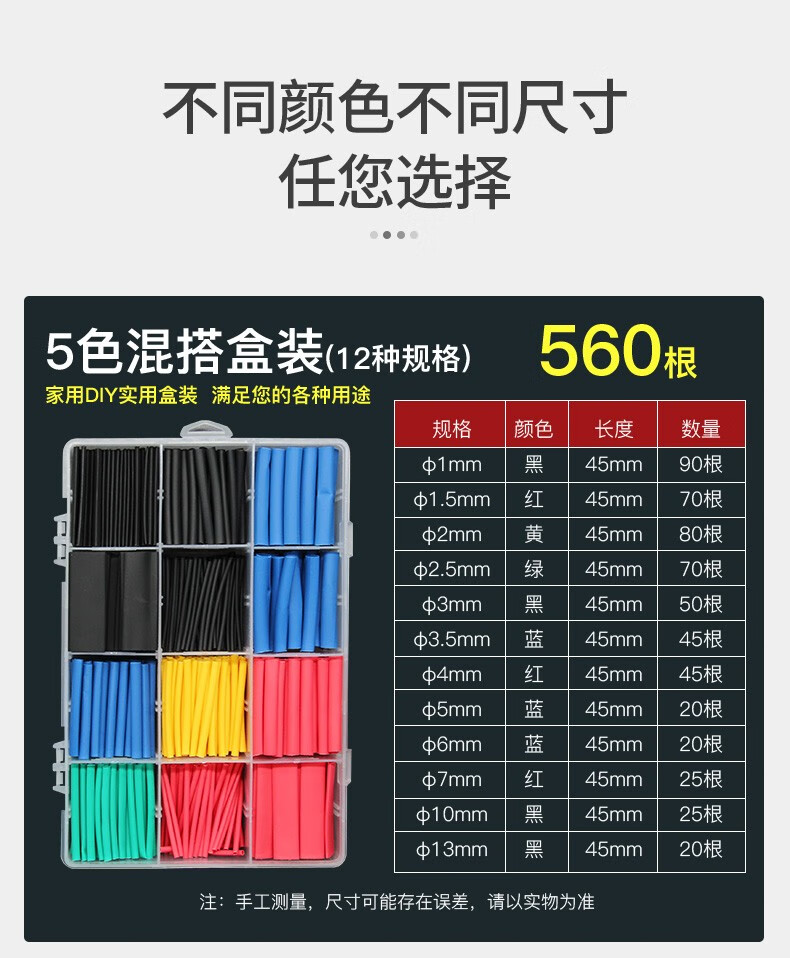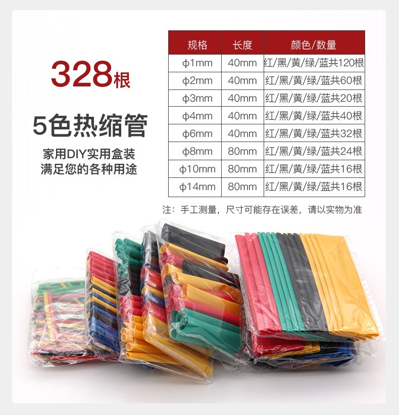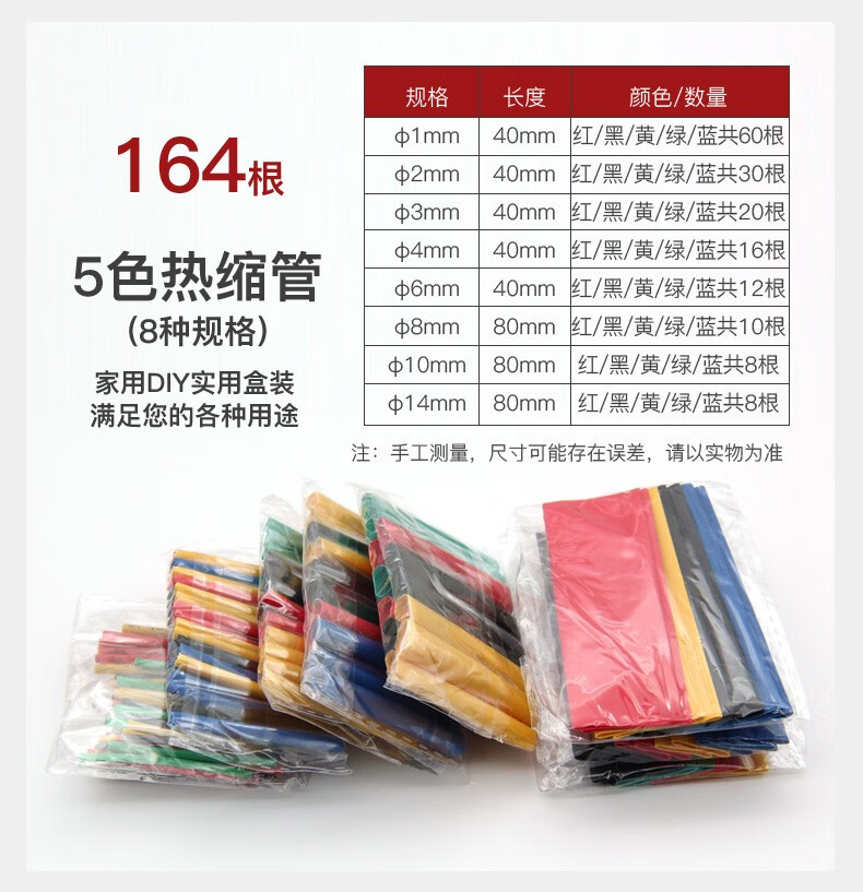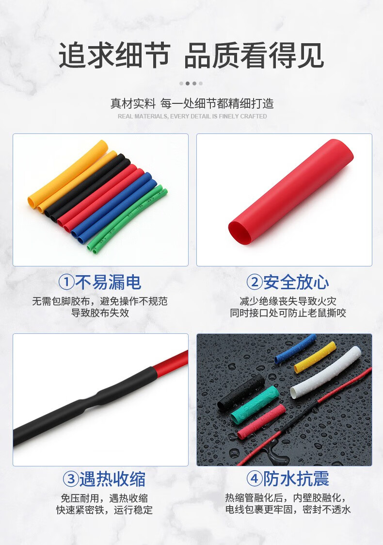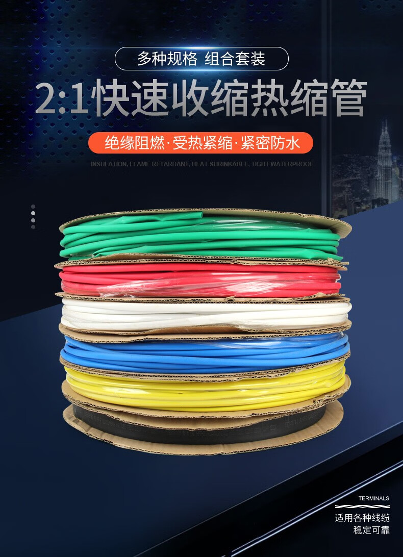 汇君 热缩管组合套装 电工用绝缘收缩套管50只/盒装(红20、蓝15、白10,黄色5)