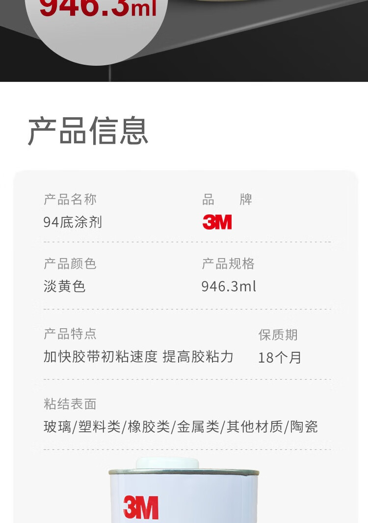 3M Primer3H 946ml 助粘剂 底涂剂 表面处理剂 提高粘接力加快初粘速度