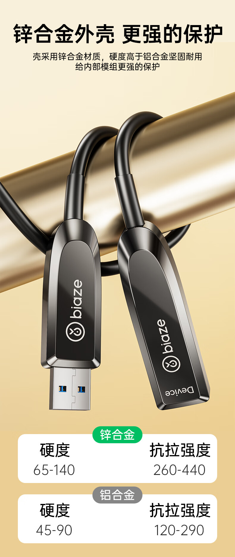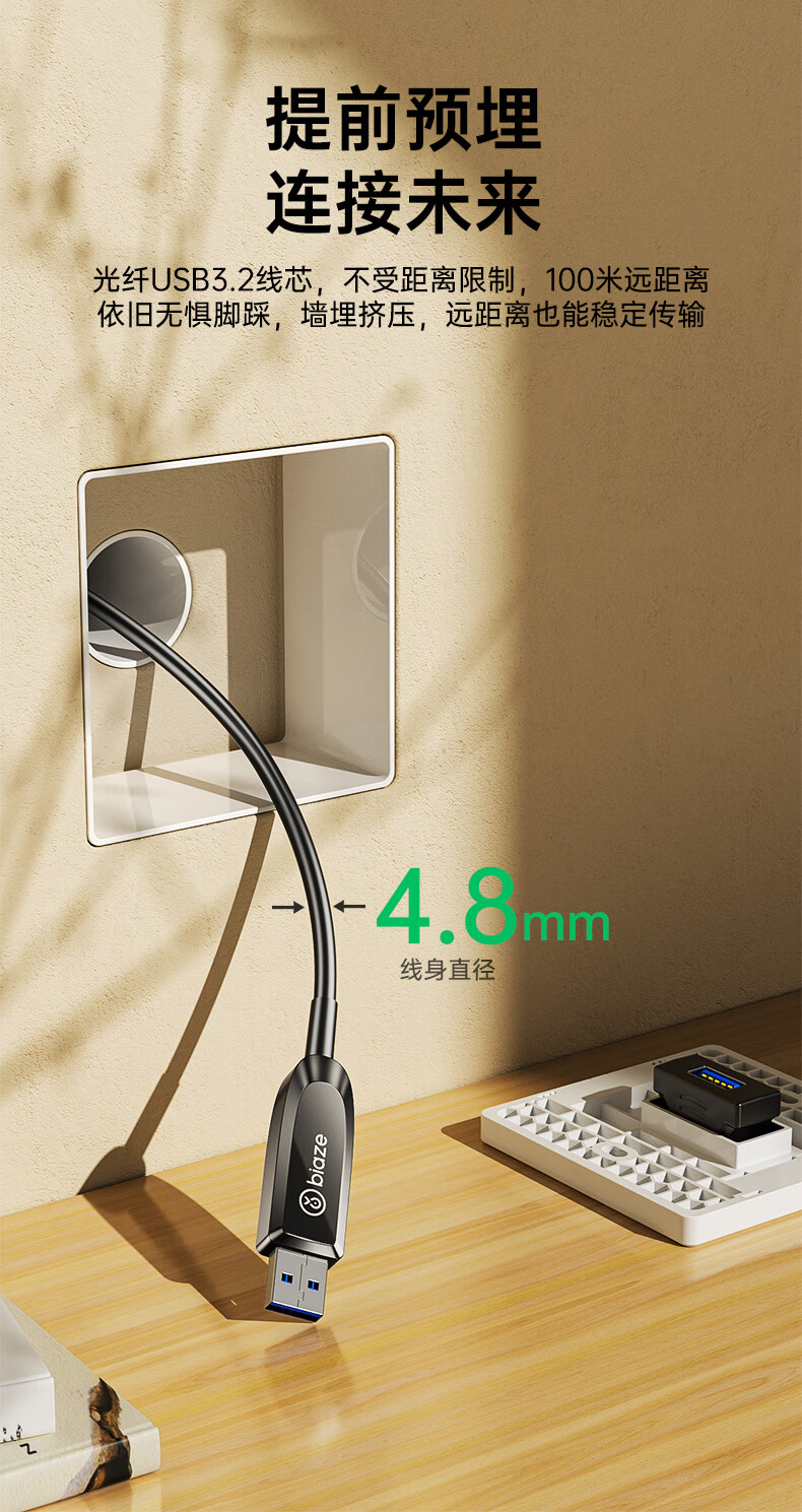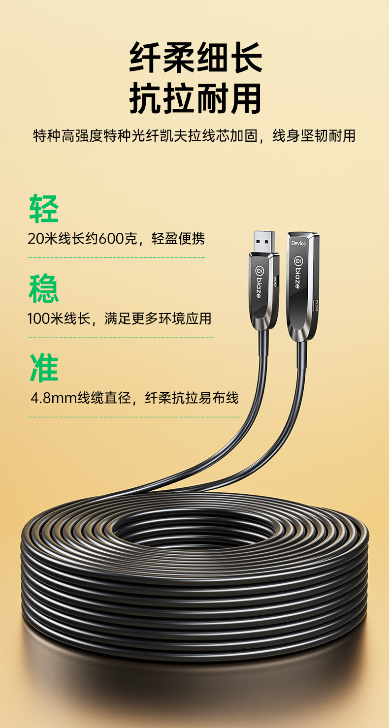 毕亚兹USB延长线 USB3.1光纤延长线 公对母 5米 XL32