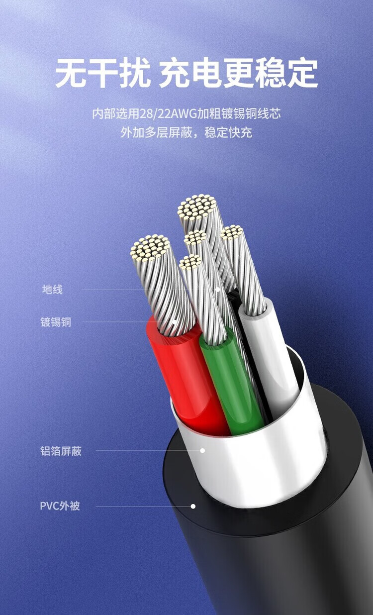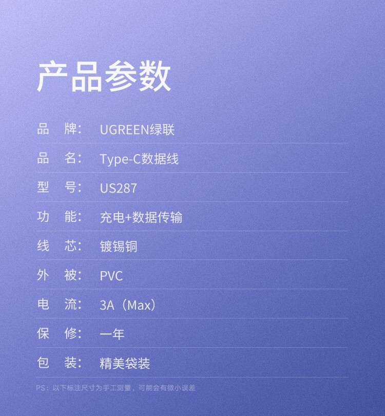 绿联 USB2.0转Type-C数据线3A 0.5M 白色 60120