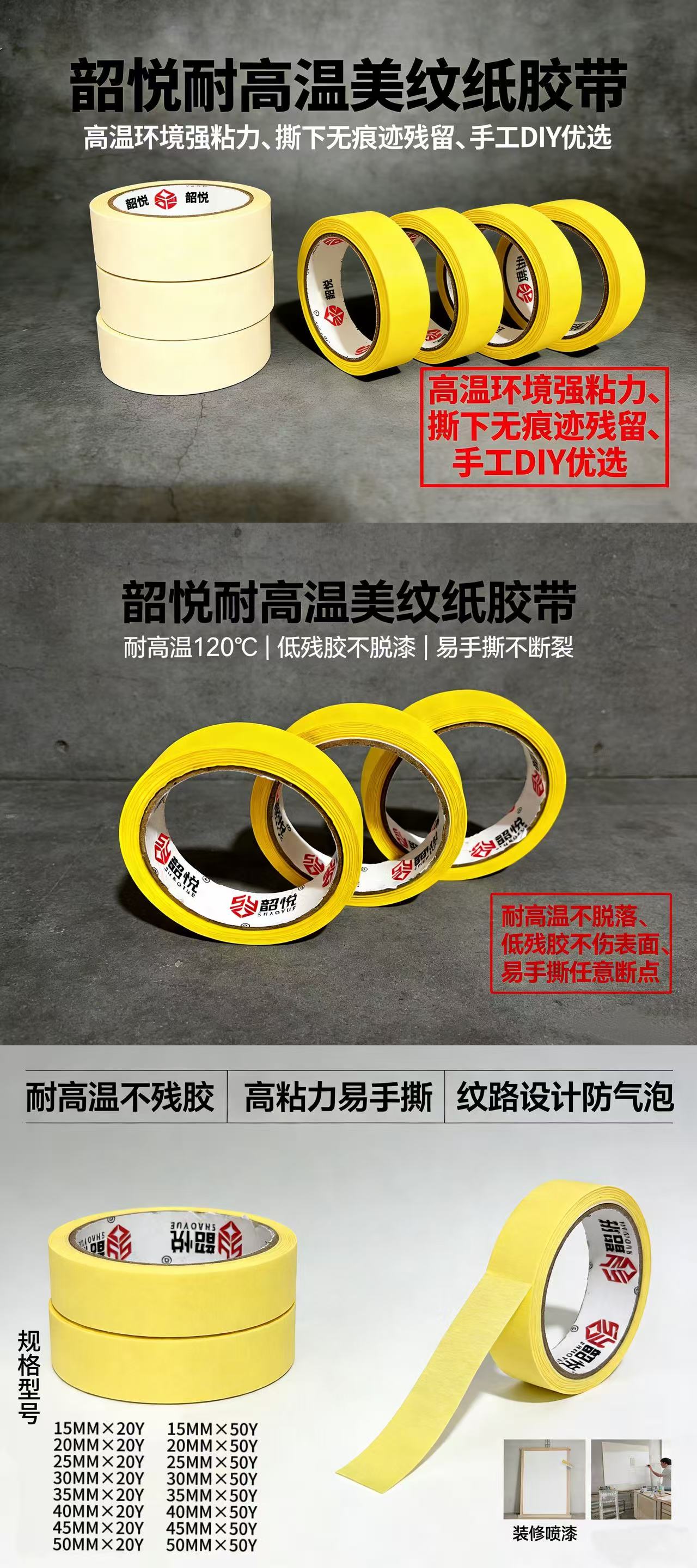 SY(韶悦) 白/黄色美纹纸胶带 35MM-45.7M MWZ35MM50Y