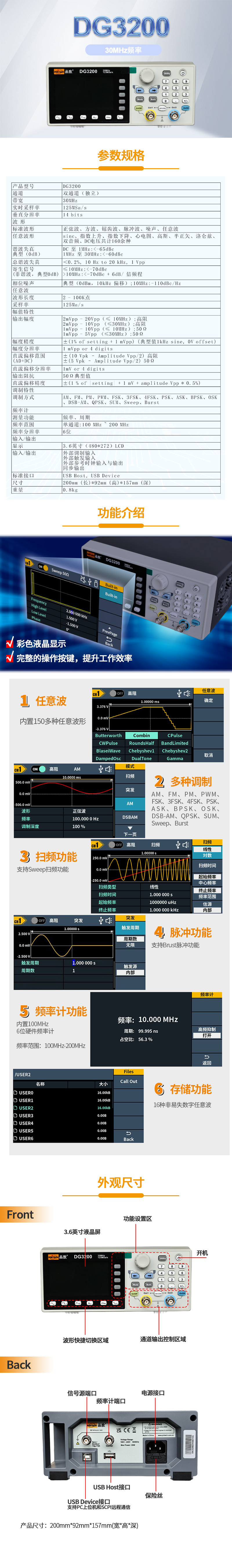 Pintech品致DG3200双通道任意波形发生器(30MHz)