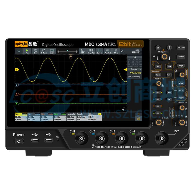 Pintech品致四通道示波器MDO7504A垂直分辨率12bits