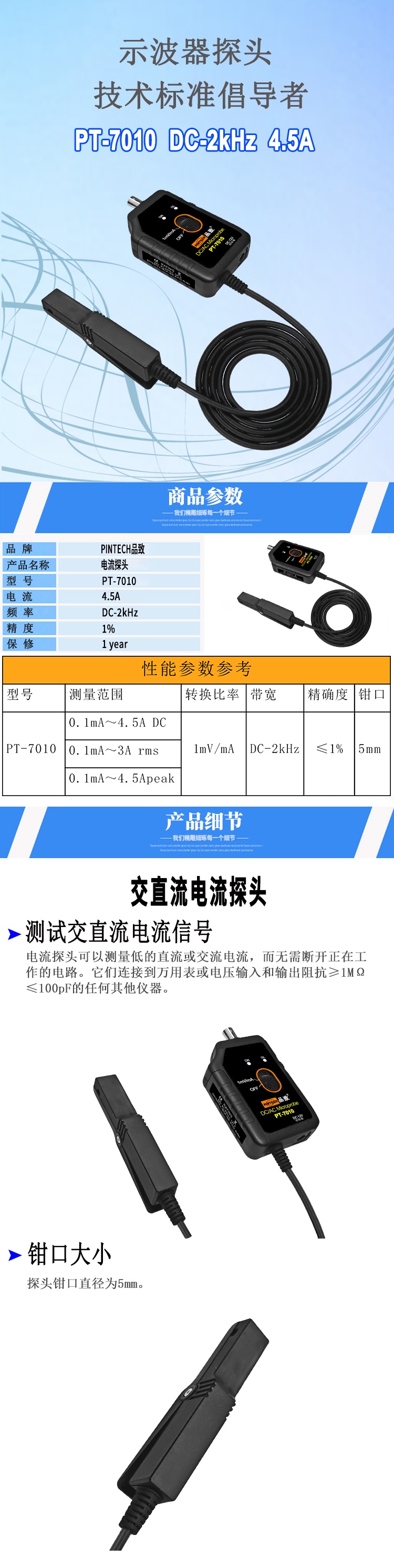 PINTECH品致PT-7010小电流探头(2kHz,0.1mA-4.5A)