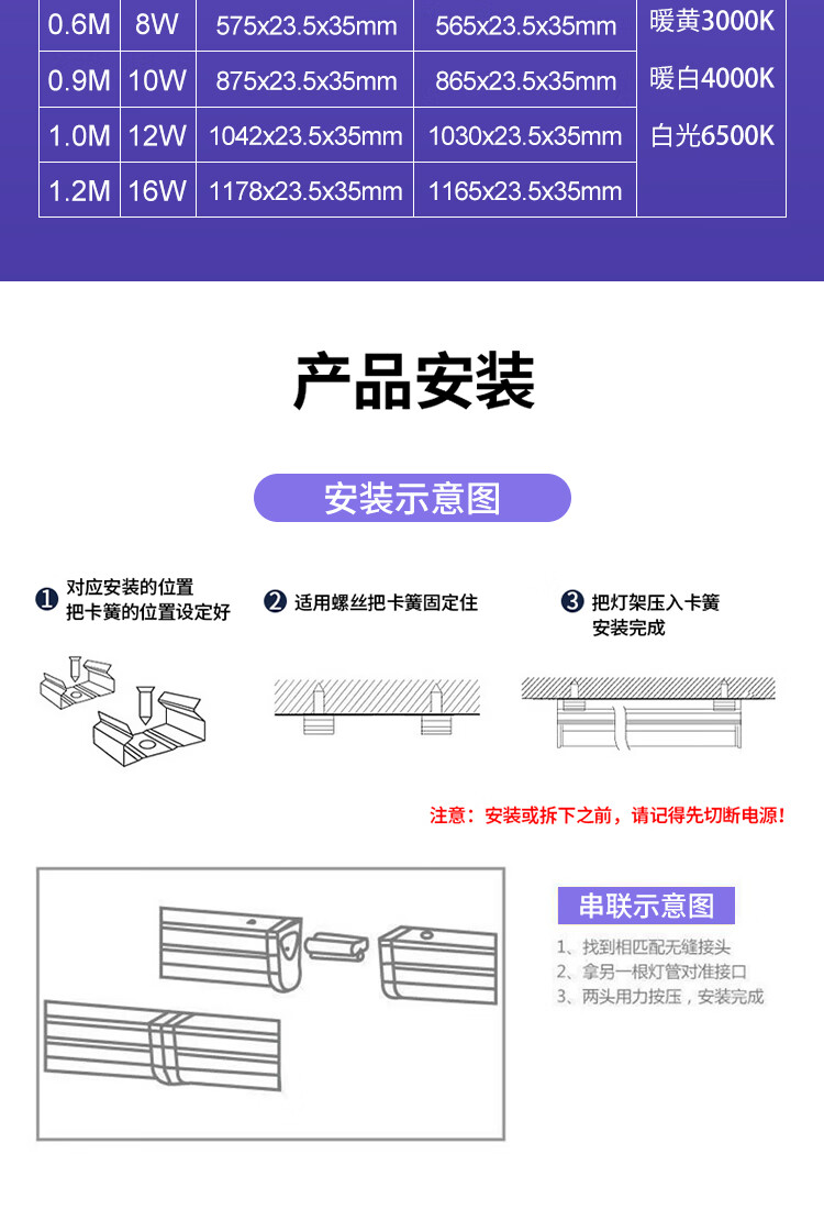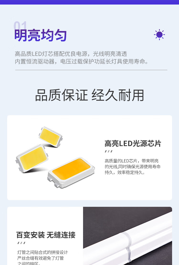 灯管之间采用贴合式拼接设计,严丝合缝,避免出现暗区或光斑不均现象