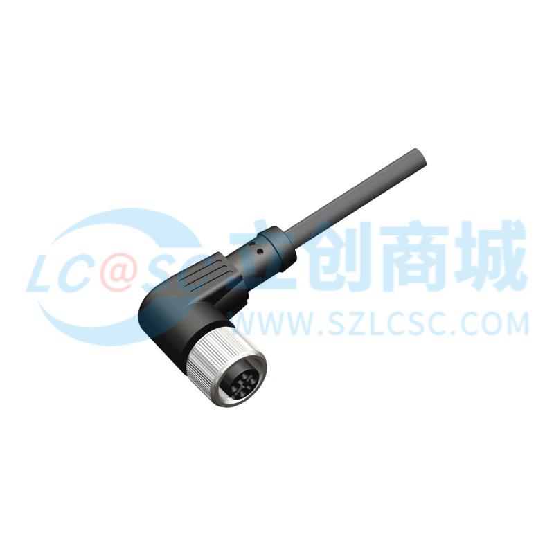 RS PRO 4芯传感器执行器电缆, 2m长, M12直角母座转无终端接头, 屏蔽, 0.25mm² CSA, PUR黑色护套, IP67 1个/包