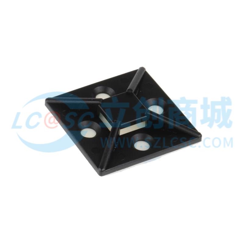 RS PRO 电缆扎带固定座, 38mm 长, 定孔直径 5mm, 尼龙 66, 黑色,适用于10.2mm 宽扎带 100个/包