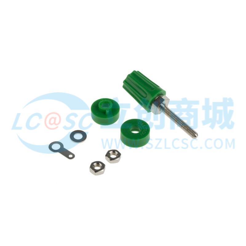 RS PRO 4 mm 测试插头和插座, 母座, 绿色, 额定电流16A, 焊接端接, 额定电压50V 直流, 52.9mm长 5个/包