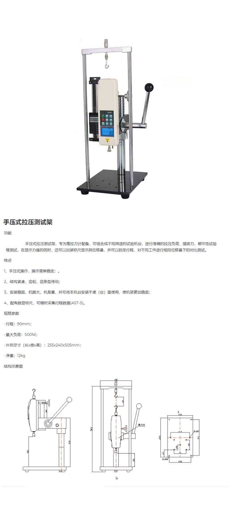 Vogel/沃戈耳 数显手压式拉力测试架 最大负荷 1000N.m