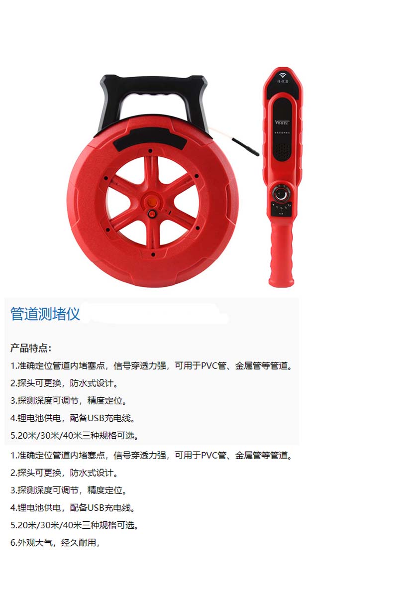 Vogel/沃戈耳 管道测堵仪 20m