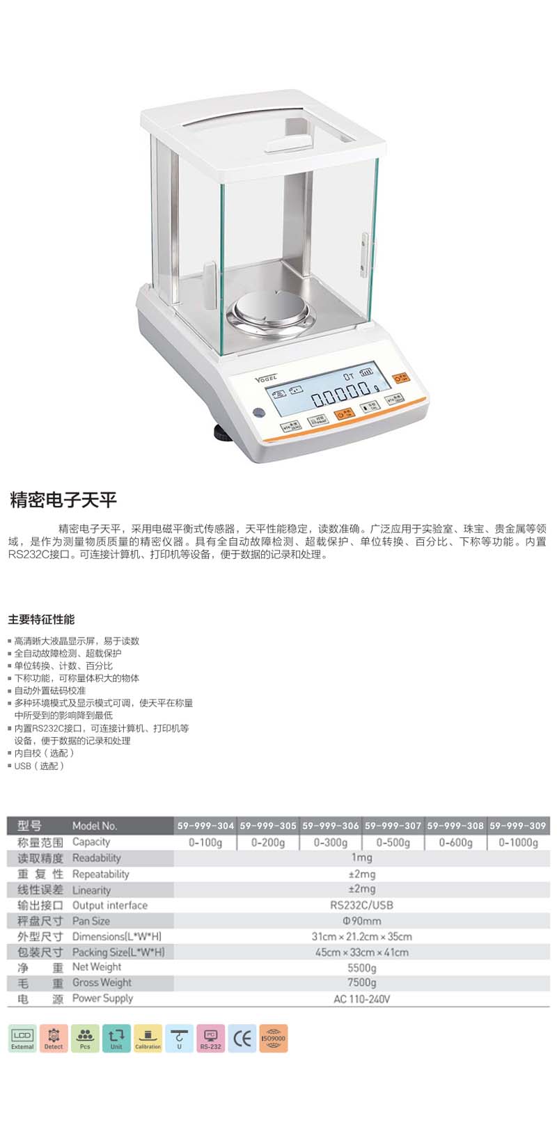 Vogel/沃戈耳 高清数显精密电子天平 1mg 0~1000g