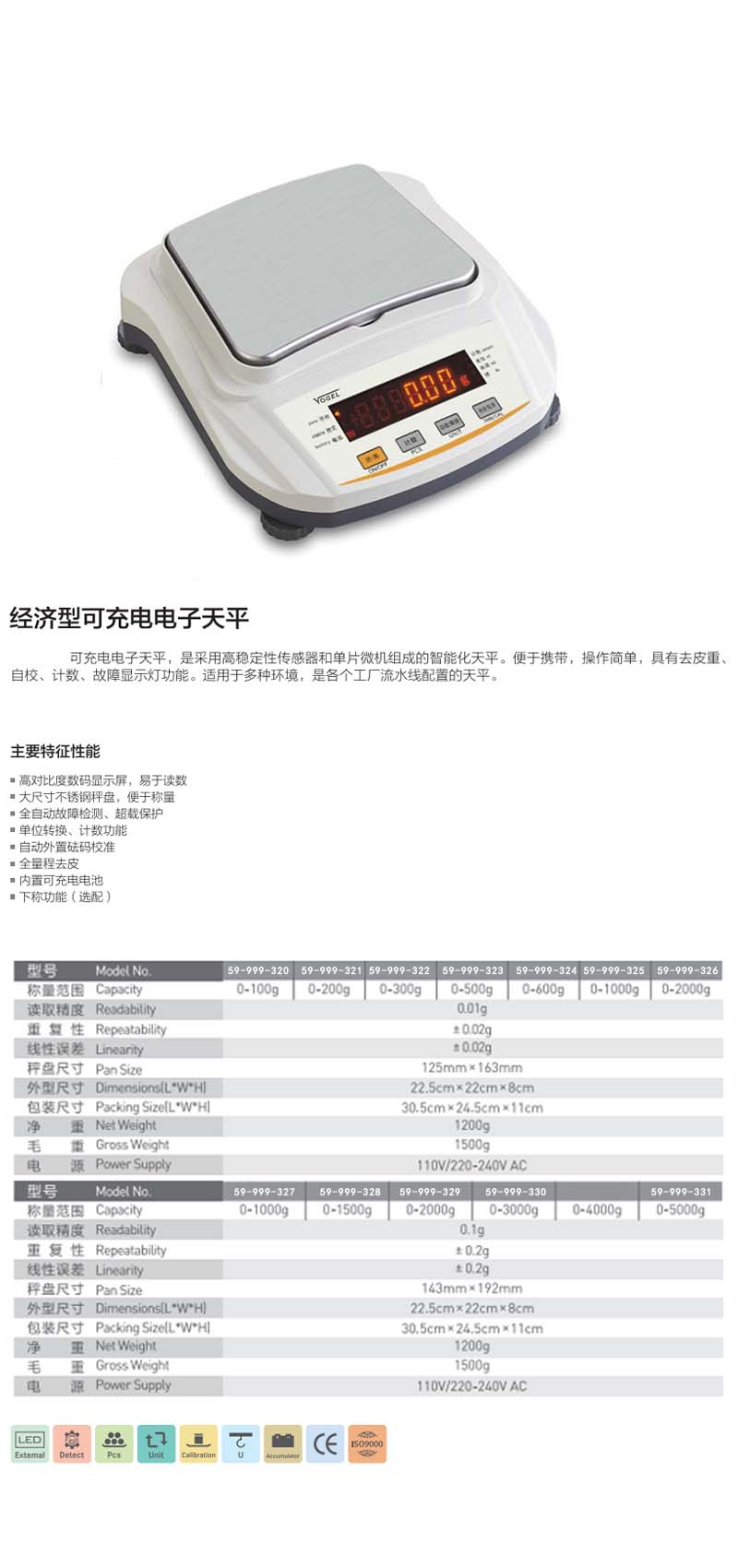 Vogel/沃戈耳 高清数显可充电电子天平 0.1g 0~3000g