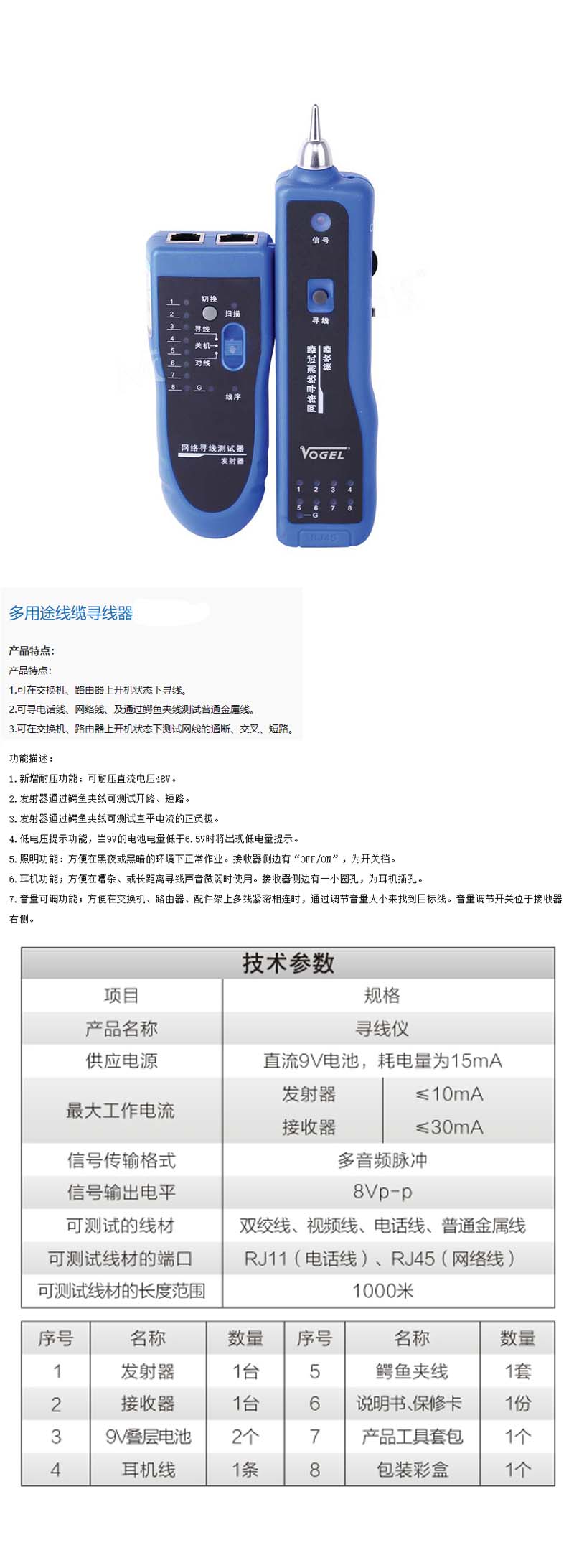 Vogel/沃戈耳 多用途线缆寻线器 可测试线材的长度范围:1000米