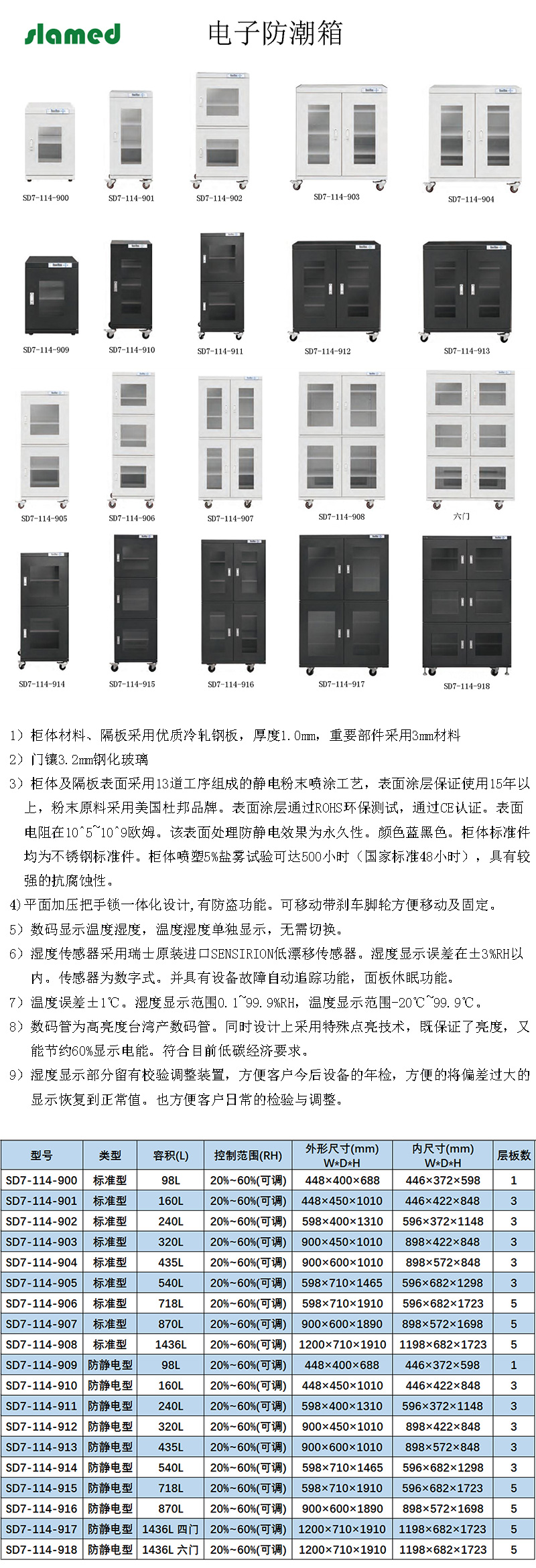 slamed/萨拉梅德 SLAMED 智能型数码电子防潮箱-防静电型 -435型 (中湿度数码系列20%-60%RH可调)-435型