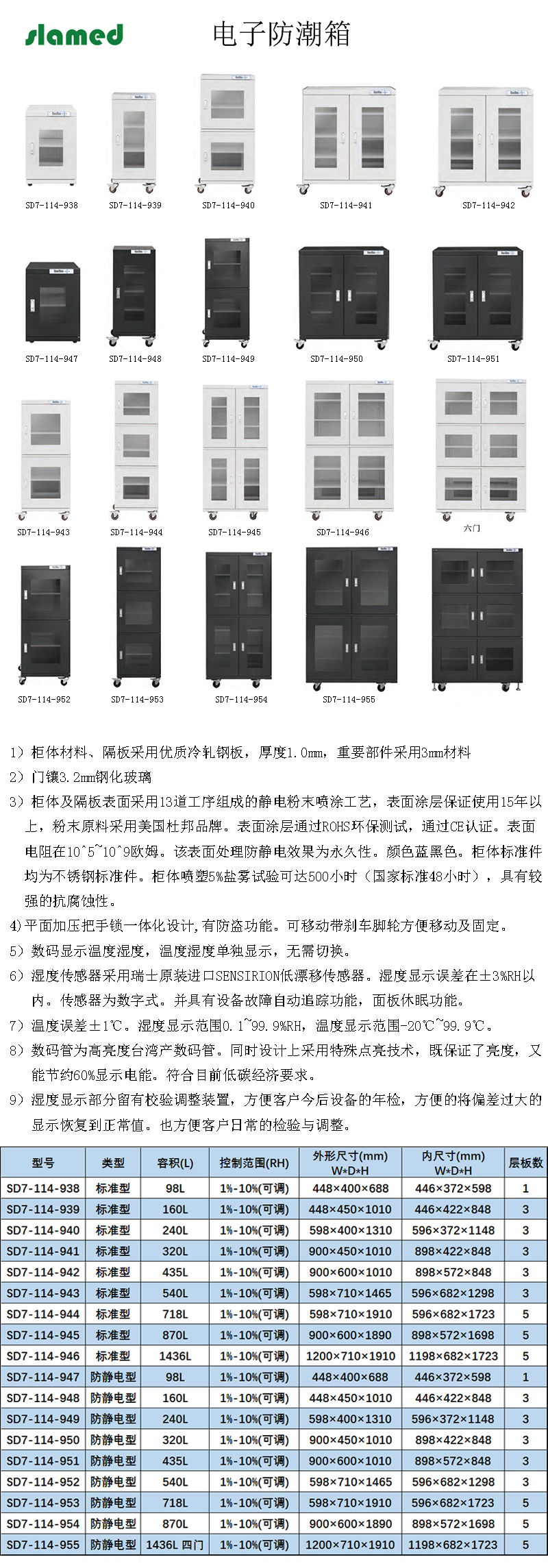 slamed/萨拉梅德 SLAMED 智能型数码电子防潮箱-标准型 -98型 (超低湿度系列1%-10%RH可调)-98型