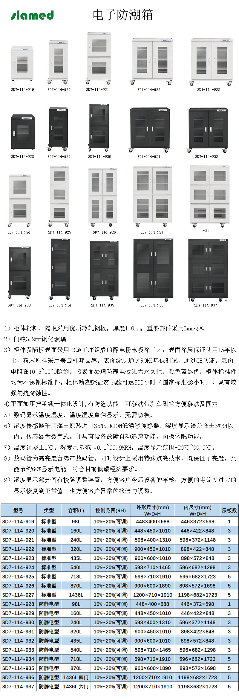 slamed/萨拉梅德 SLAMED 智能型数码电子防潮箱-防静电型 -240型 (低湿度数码系列10%-20%RH可调)-240型