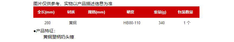 FAHRION/飞日诺 黄铜塑柄奶头锤 230g