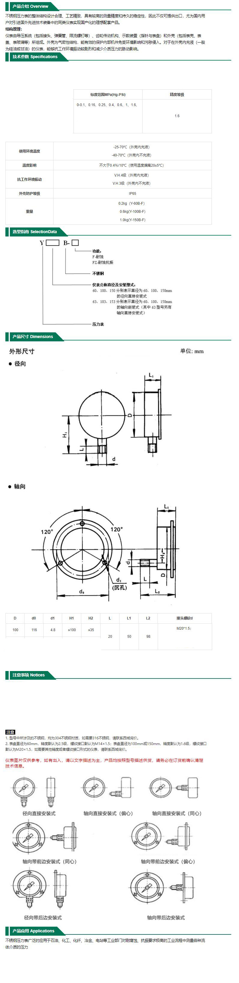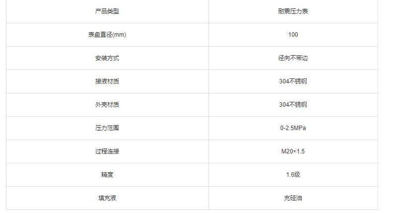 FAHRION/飞日诺 耐震压力表 0~2.5MPa