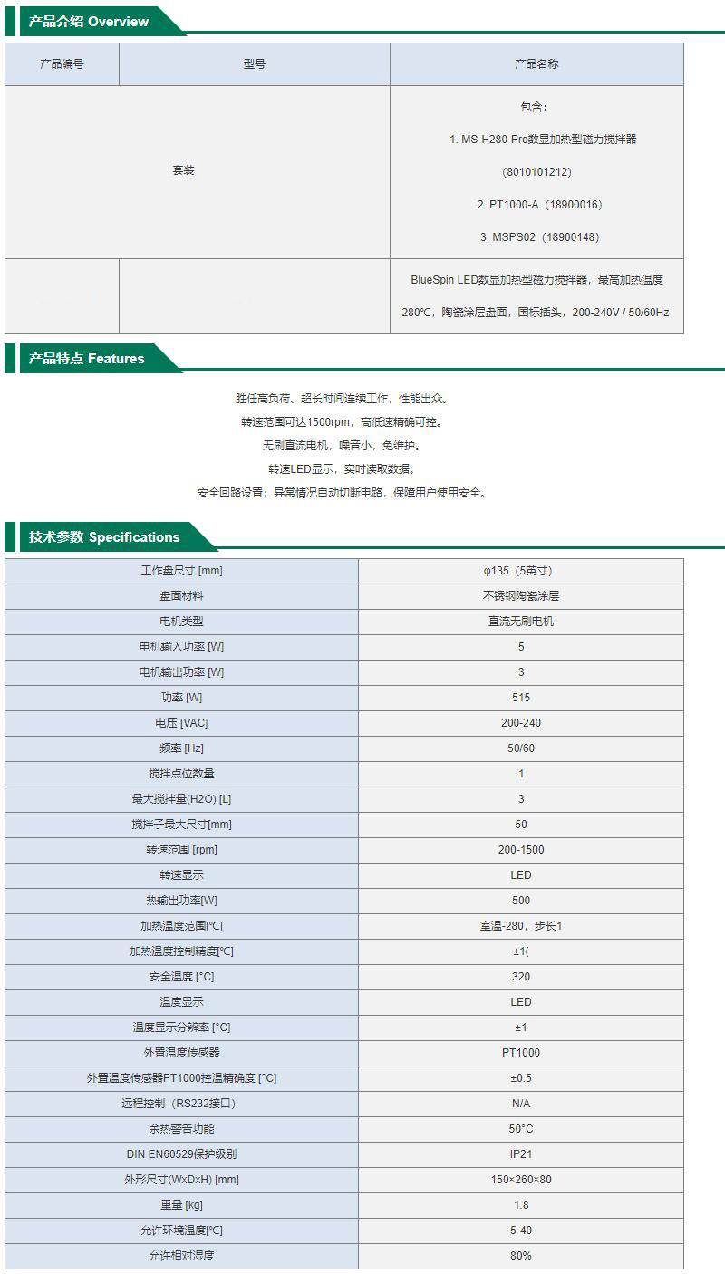 FAHRION/飞日诺 加热磁力搅拌器套装 1500rpm