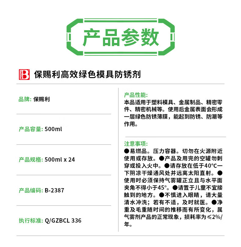 BOTNY(保赐利)白色模具防锈剂 塑料模具精密机械三防锈润滑防潮除湿抗氧抗酸 500ml