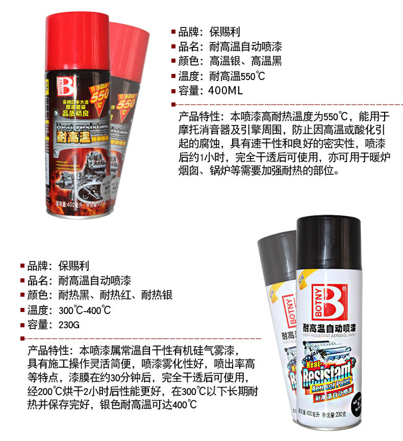 BOTNY(保赐利)手喷漆耐高温喷漆 1400耐热红喷漆400ml
