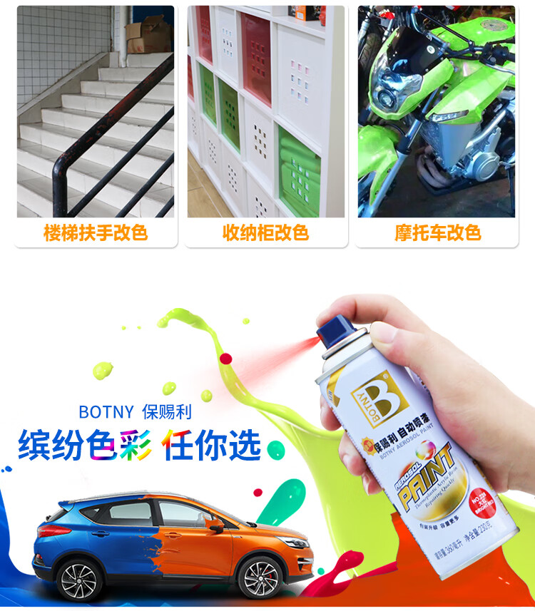 1 覆盖力强:BOTNY(保赐利)手用喷漆具有卓越的覆盖能力,能够有效遮盖底色,尤其适用于深色底材的改色需求。
