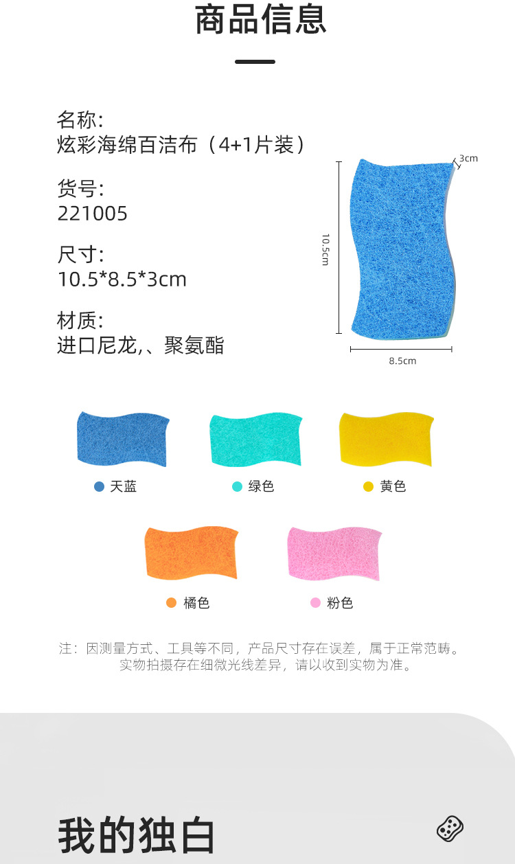 CHAHUA(茶花)炫彩海绵百洁布(4+1片装) 221005